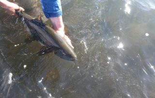 River Laxa is not only one of the best salmon rivers in Iceland in regards to size of the salmon but it is also one of the best brown trout river in the world with a very high average size of brown trout. The Laxá origins in lake Mývatn and the river draws it’s name from the valley it runs trough on the way to the ocean in the Skjálfandi bay. To explain, up in the Mývatn area it is Laxá in Mývatnssveit, as it runs through the valley Laxárdalur it is called Laxá in Laxárdal and then finally the bottom stretch that is also known for great big salmon Laxá in Aðaldal.