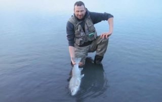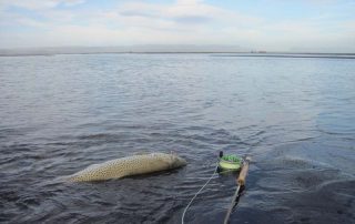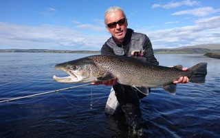 Spring and autumn is the main time for Vatnamotin. We catch many fish between 5 and 12 pounds in this area and few as big as 20 pounds. Anglers need to wade in a sandy bottom to cover this area that is mostly fished with streamers, but also nymphs. Rods, #6-7 are good for this area, weight forward lines. Sink tips are often used. Dbl handed rods can also come in handy to cover water.